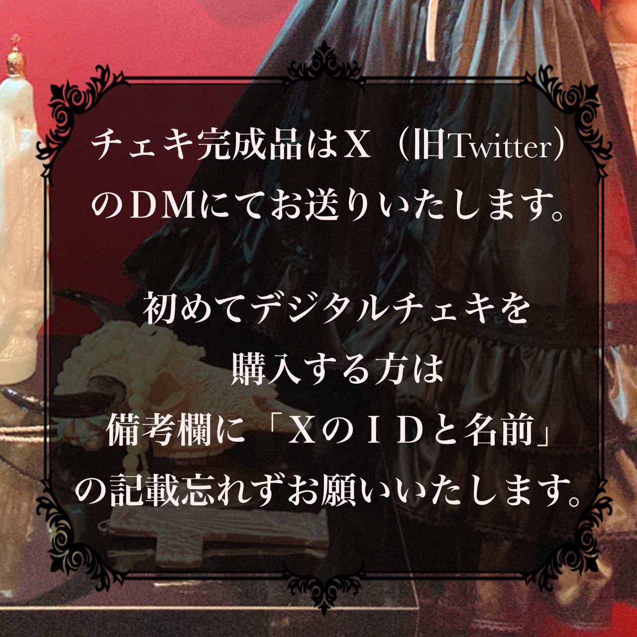 初めてデジタルチェキを購入する方は備考欄に「XのIDと名前」の記載忘れずお願いいたします。